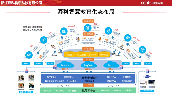 目前,教育信息化浪潮席卷全國。“雙減”政策的出臺更是將家校聯通的重要性提高到了新的高度。校園信息化的部署顯得尤為重要。中國電科嘉科信息打造的智慧教育方案,通過“一個平臺”“兩個中心”“三大核心能力”“四大服務體系”,提供“七大應用場景”服務。